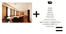 Realizzazione catalogo di illuminazione con inserimento in fotomontaggio digitale della lampada in ambiente ufficio.